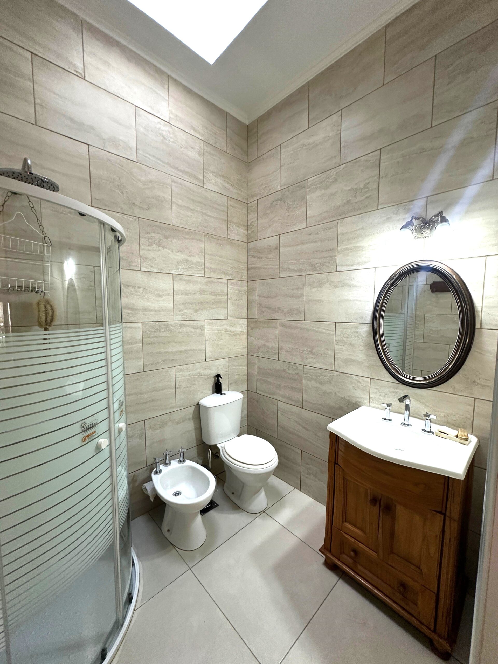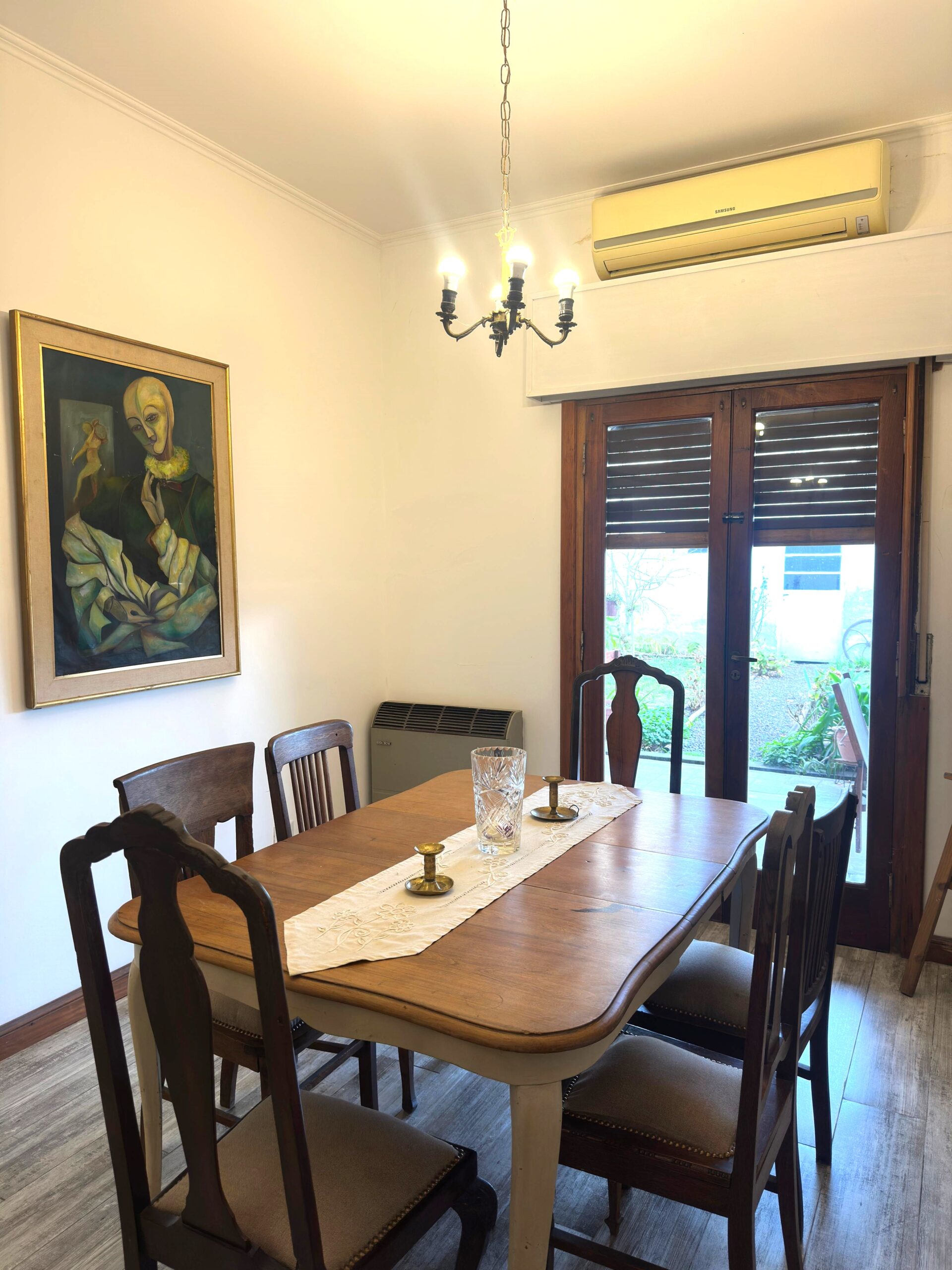 Comodidades: 2 dormitorios (uno con baño en suite y vestidor), 2 baños completos (uno en suite), cocina – comedor integrado, living-estar, garaje cubierto, lavadero cubierto, parrilla, galería semi cubierta, jardín, galpón (lugar de guardado)