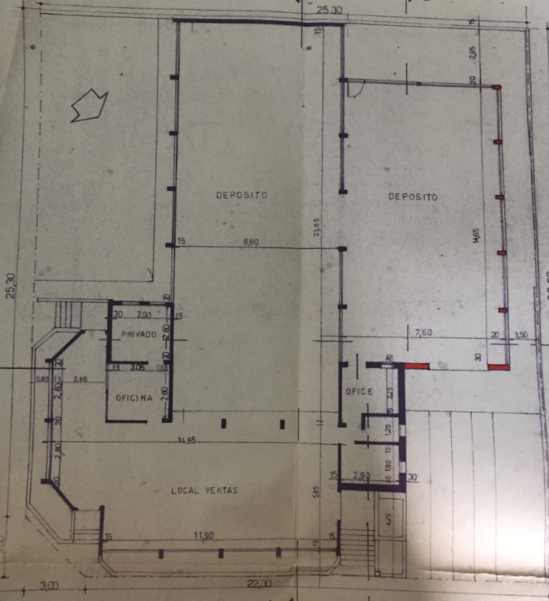 Amplio local comercial, depósitos cubiertos, playa de estacionamiento.